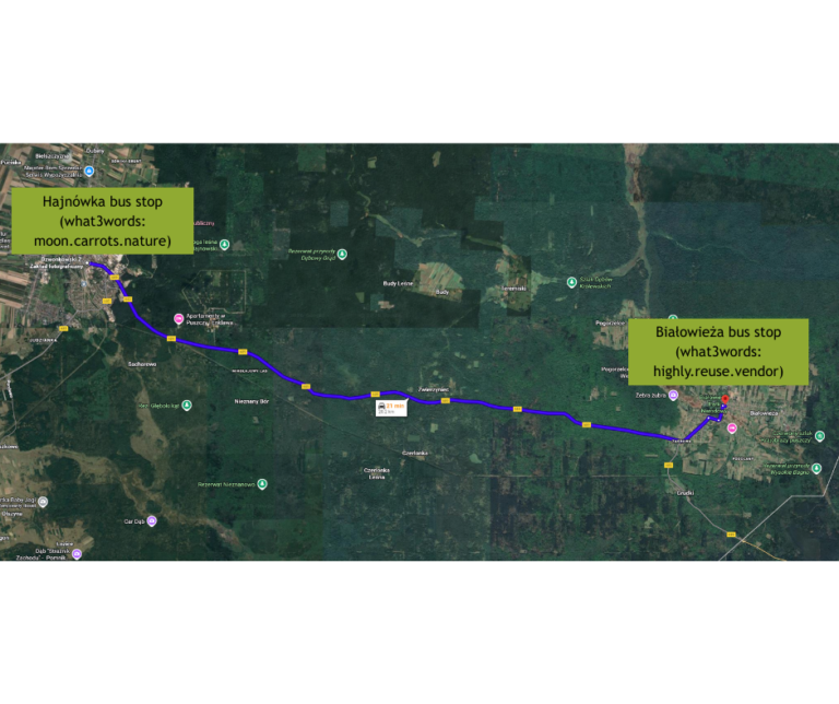 The last stage of the travel – Hajnówka-Białowieża must be done by bus or taxi. There are only several bus connections daily. A taxi journey between Białowieża and Hajnówka is ca 19 km and usually the price varies around 200PLN – taxi drivers list available here: https://hajnowka.pl/strona/1686-taksowki