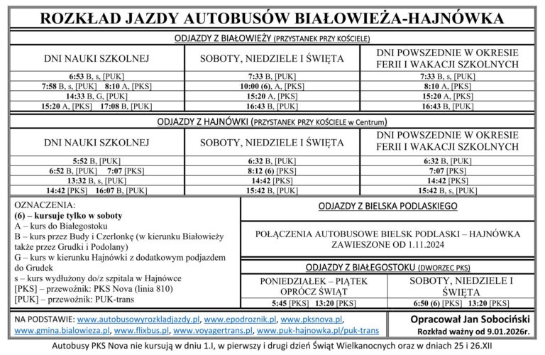 In Białystok you can also find buses to Hajnówka and Białowieża.